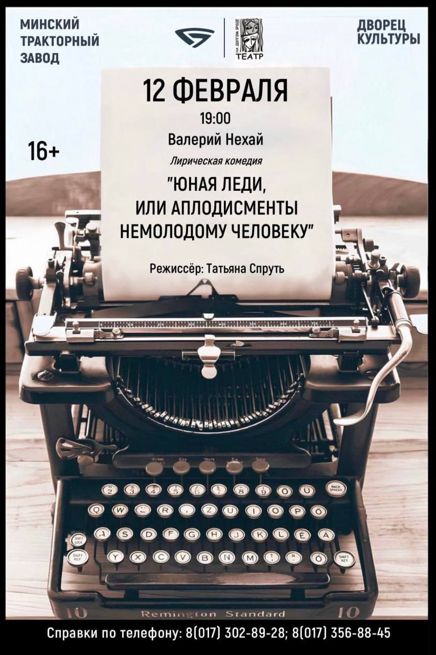 Спектакль «Юная леди, или Аплодисменты немолодому человеку» в исполнении народного театра «На Долгом Броде» покажут на большой сцене Дворца культуры Минского тракторного завода 12 февраля. Об этом корреспонденту «Трактор.бел» сообщила директор ДК МТЗ Наталья Кользун.